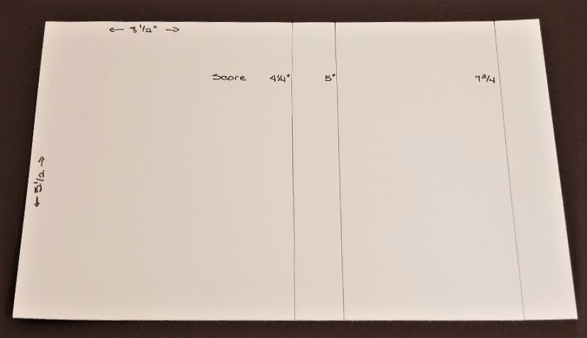 ½” x 5 ½”, scored at 4 ¼”, 5”, 7 ¾”.